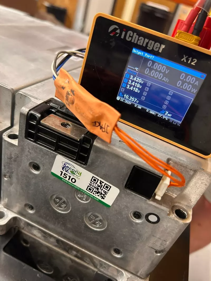 Therefore we know how important to you, that we do the leg work to test the batteries, to disclose what the remaining capacity is within any one module. So we take a sample module from the pack to perform a capacity test on it. We charge the module up to is specified max voltage and the discharge the module at 5amps. Our test kit ( see images ) eventually tells us the Ah/ kWh that the unit has taken out down to the specified minimum module voltage.